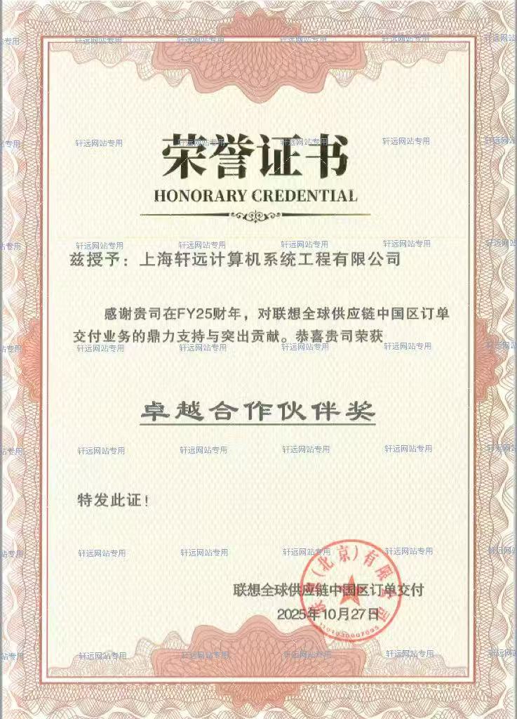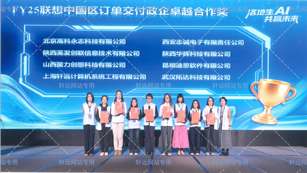 上海轩远荣获FY25联想中国区订单交付政企卓越合作奖